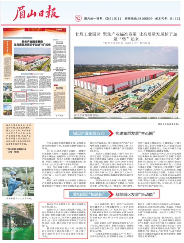 《眉山日報》聚焦通威太陽能眉山基地四期項目建設有序推進