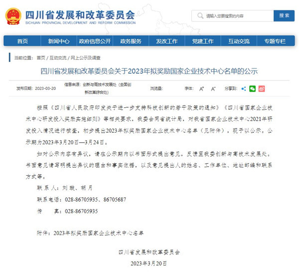 通威太陽能雙流基地榮獲國家企業技術中心研發投入獎勵