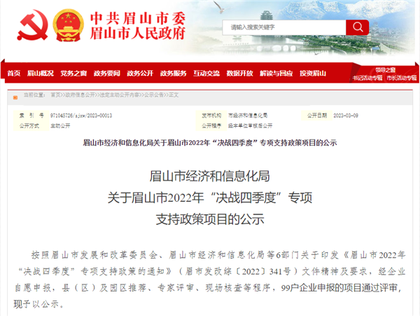 通威太陽能眉山基地順利獲得眉山市“1+3”產(chǎn)業(yè)高質(zhì)量發(fā)展等多項(xiàng)專項(xiàng)支持政策