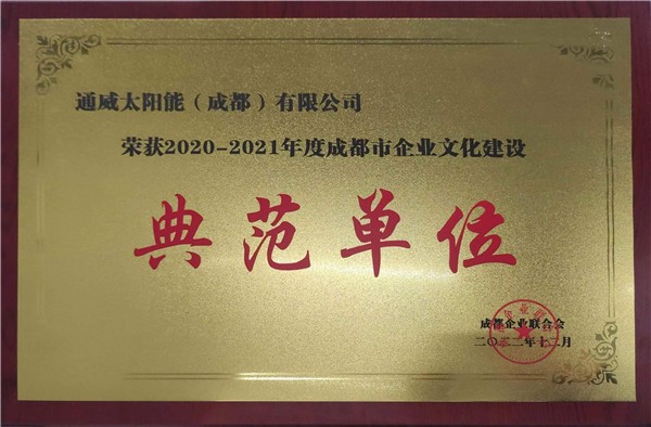 通威太陽(yáng)能雙流基地再獲“成都市企業(yè)文化建設(shè)典范單位”殊榮