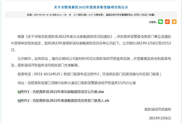 通威太陽能(安徽)有限公司榮獲合肥市高新區(qū)2022年度企業(yè)表彰獎勵