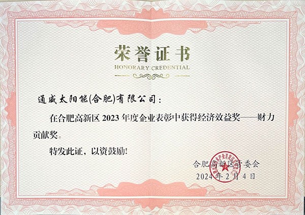 通威太陽能(合肥)有限公司 榮評2023年度合肥高新區優秀企業