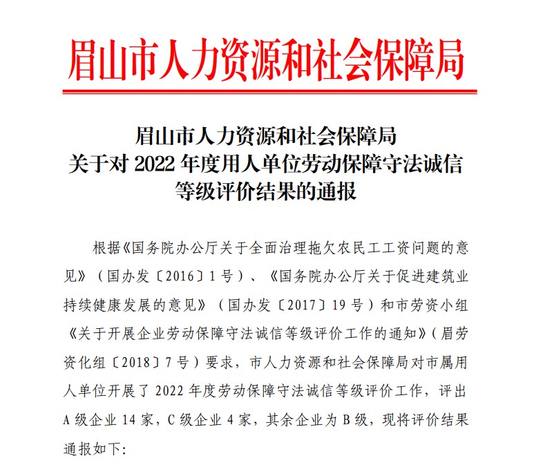 通威太陽能眉山基地獲評眉山市“2022 年度用人單位勞動保障守法誠信A級企業”