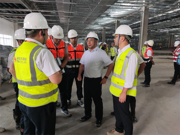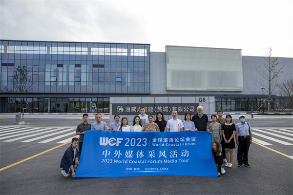 2023全球?yàn)I海論壇會(huì)議中外媒體蒞臨通威太陽(yáng)能(組件)鹽城基地參觀