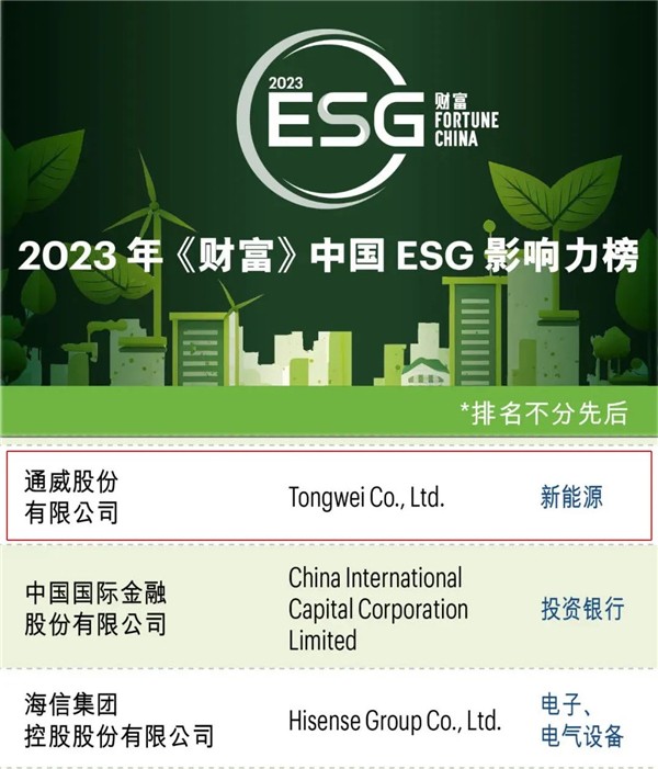 通威股份榮登2023年《財富》中國ESG影響力榜單