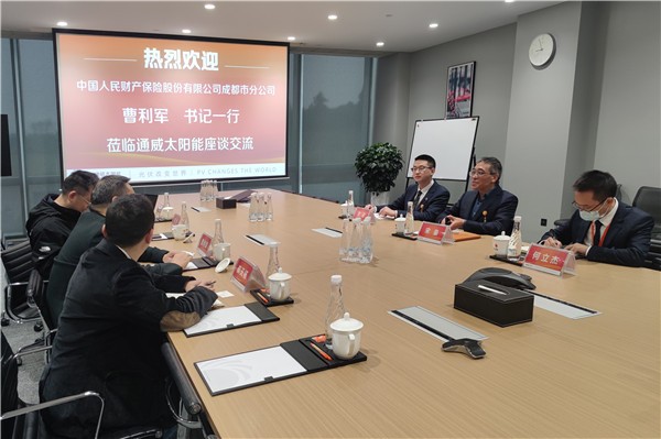 中國人民財(cái)產(chǎn)保險(xiǎn)股份有限公司成都市分公司曹利軍書記一行蒞臨通威太陽能座談交流