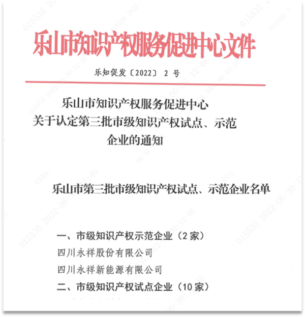 永祥股份、永祥新能源入列樂山市第三批市級知識產權試點、示范企業名單
