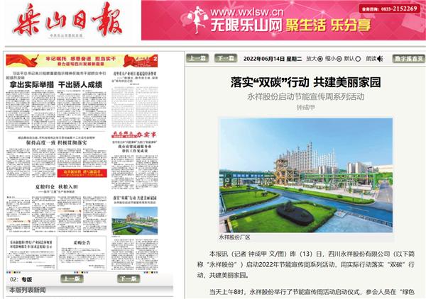 樂山市主流媒體聚焦報道永祥股份節能宣傳周活動