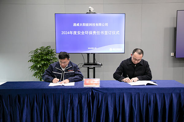 1月26日至2月1日,通威太陽(yáng)能科技各基地組織開(kāi)展1月份月度綜合安全檢查及會(huì)議,并舉行2024年度安全環(huán)保目標(biāo)責(zé)任書(shū)簽訂儀式。通威股份總裁助理、通威太陽(yáng)能(合肥)有限公司總經(jīng)理蕭圣義,通威太陽(yáng)能(鹽城)有限公司副總經(jīng)理翟緒錦帶隊(duì)各基地部門(mén)負(fù)責(zé)人及安全員參與檢查,并進(jìn)行責(zé)任書(shū)簽訂儀式。