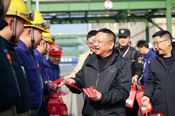 2月10日,大年初一,通威股份副總裁、永祥股份總經理、永祥新能源總經理李斌帶隊,分別深入永祥樂山基地各分子公司一線,慰問春節期間堅守崗位的員工,為員工送上節日的問候、祝福和深切的關懷。永祥股份副總經理、永祥新能源常務副總經理羅周,永祥股份安全環保總監楊武明,永祥股份總經理助理王玲等領導參加慰問。