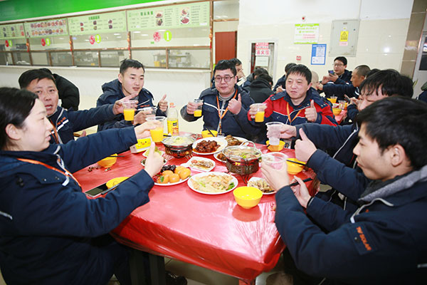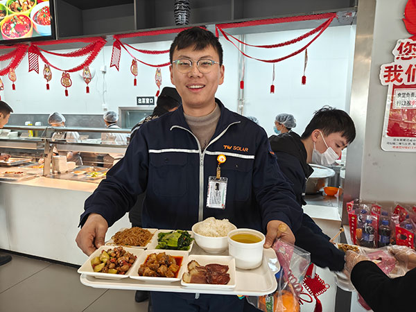 我們在一起,是“家”是“團圓”,在通威太陽能,每逢新春佳節,總有一群堅守崗位就地過節的員工,為了讓員工們在公司也能過上安心年、暖心年。公司聯合食堂供應商特別準備了美味可口的年夜飯、春節福利餐,讓員工即便不能回鄉,也能與通威家人們一起同享美食、共度佳節,感受不一樣的“家”的味道。