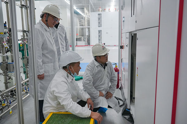 調(diào)研現(xiàn)場,朱常委一行深入金堂基地5G智能制造、高潔凈度生產(chǎn)車間,近距離了解并詳細聽取金堂基地的技改規(guī)劃與進度。朱常委對通威太陽能技術(shù)水平、管理模式給予充分肯定,并仔細詢問企業(yè)目前在各方面遇到的困難。他表示,政府將大力支持企業(yè)技改并提供多方保障,希望通威太陽能按時按期完成技改工作,持續(xù)助力金堂縣域經(jīng)濟實現(xiàn)高質(zhì)量發(fā)展。