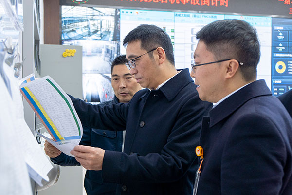 高管團(tuán)隊(duì)一行對車間實(shí)時(shí)運(yùn)行情況進(jìn)行檢查