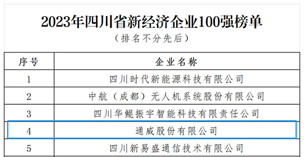 通威榮列“2023年四川省新經濟企業(yè)100強”榜單