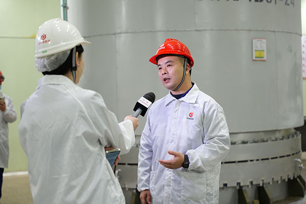 在永祥新能源還原二工段還原大廳,記者一行詳細(xì)詢問了晶硅的生產(chǎn)工藝、公司的科研創(chuàng)新情況,并對(duì)永祥的發(fā)展歷程、生產(chǎn)運(yùn)行情況、能耗指標(biāo)等進(jìn)行了細(xì)致了解。官部長對(duì)央視記者一行的到訪表示熱烈歡迎,并表示,通威歷經(jīng)40多年的發(fā)展,已經(jīng)形成了完整的新能源產(chǎn)業(yè)鏈。永祥股份一直以來始終堅(jiān)持“綠色工廠生產(chǎn)綠色產(chǎn)品”的環(huán)保理念,通過技術(shù)創(chuàng)新,不斷夯實(shí)行業(yè)龍頭地位。目前永祥自主研發(fā)的“永祥法”已應(yīng)用至第八代,研發(fā)儲(chǔ)備至第九代,產(chǎn)品純度高達(dá)11個(gè)9,真正實(shí)現(xiàn)了高純晶硅中國“智造”。