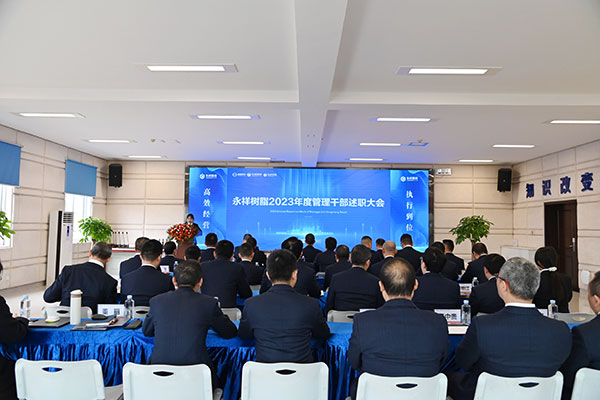 1月22日,永祥樹脂2023年度管理干部述職大會成功召開。永祥樹脂副總經理柳志勇、安全環保總監李繼承、總經理助理文龍出席,各部門、車間負責人、工程師參會。