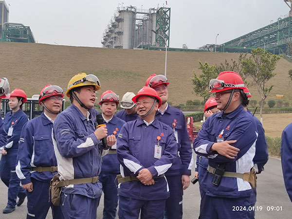 為切實做好安全生產工作,消除安全隱患,1月19日,通威股份副總裁、永祥股份總經理、永祥新能源總經理李斌帶領公司管理團隊到永祥新能源精餾一工段進行現場安全大檢查,工段管理人員全體參與。