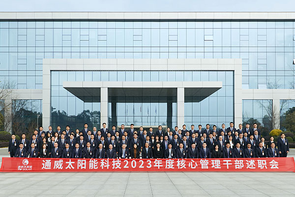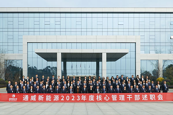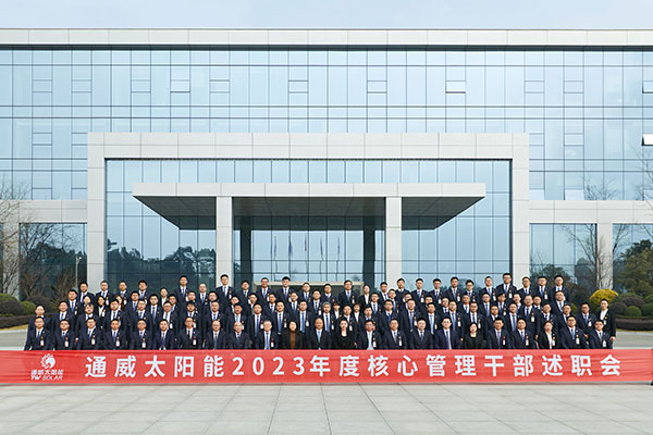 1月18日,通威太陽能、通威太陽能科技、通威新能源2023年度核心管理干部述職會議相繼在通威太陽能(電池)雙流基地順利召開。全國人大代表、全國工商聯副主席、通威集團董事局劉漢元主席出席述職會并作重要指示。通威股份董事長、CEO劉舒琪出席并講話。通威股份監事會主席鄧三,通威股份總裁助理、通威太陽能(合肥)有限公司總經理蕭圣義,通威股份光伏首席技術官邢國強,通威太陽能總經理周華,通威新能源有限公司總經理鄧衛平,通威股份財務總監周斌,通威股份董事會秘書嚴軻,通威股份人力資源總監易繼成,通威股份行政總監馮暢,通威股份金融總監邱艾松,通威股份光伏商務部組件全球營銷總經理邱新參會。通威股份管理總部相關部門負責人、各經營主體管理干部列席。