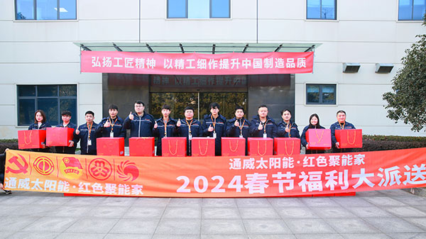 一份新春福利代表著美好祝愿,更傳遞著公司對員工的關愛。通威太陽能不僅是各位員工發展的平臺,更是一個相親相愛的大家庭,每一位員工都是大家庭的一分子。多年來,通威太陽能高度重視對員工的人文關懷,為廣大員工送去關愛和祝福,處處體現“以人為本”的企業文化,在增強凝聚力的同時也提高了員工以企業為家的主人翁意識,使職工們感受到了家庭般的溫暖,為推動企業發展增添了前進的動力。