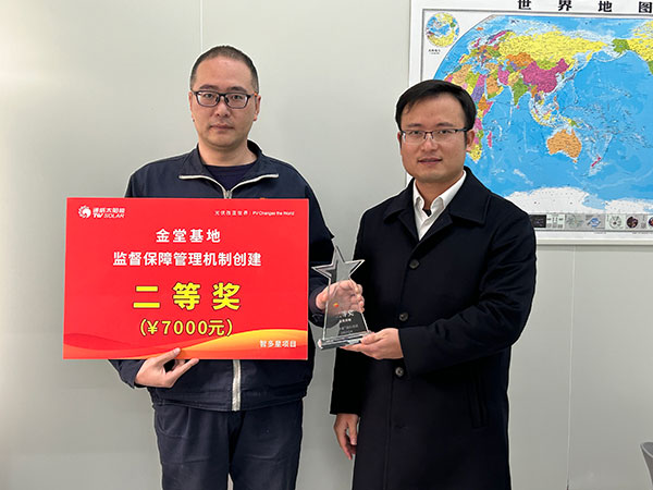 1月8日及15日,通威太陽能順利舉行2023年第四季度“精益生產管理系統提升項目”及“智多星團隊項目”頒獎儀式,通合新能源總經理助理羅曉云、通威太陽能雙流基地總經理助理徐濤出席活動并為獲獎項目代表頒獎。
