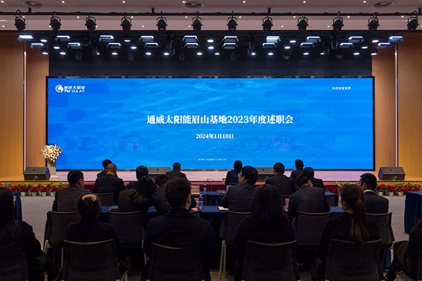 為切實總結工作業績、分析不足、明確未來工作方向和工作重點、精準擘畫事業發展圖譜,1月10日,通威太陽能眉山基地順利召開2023年度中干述職會議,通威太陽能總經理周華、副總經理宋梟、總經理助理陳君、眉山基地總經理助理姚騫出席本次會議并作總結點評。