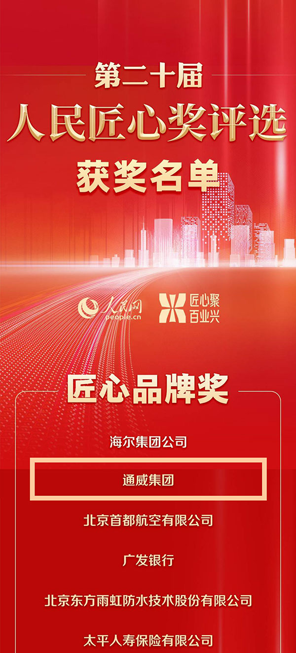 作為論壇重磅活動(dòng)之一,“第二十屆人民匠心獎(jiǎng)”獲獎(jiǎng)名單揭曉。第二十屆人民匠心獎(jiǎng)評(píng)選活動(dòng)從2023年10月正式啟動(dòng),征集了2023年度各行業(yè)、各領(lǐng)域優(yōu)質(zhì)的產(chǎn)品、技術(shù)、服務(wù)與解決方案,經(jīng)“報(bào)名征集”“案例初評(píng)”“網(wǎng)絡(luò)投票”“專(zhuān)家評(píng)審”“社會(huì)公示”等環(huán)節(jié),最終評(píng)選出人民匠心飛躍獎(jiǎng)、人民匠心服務(wù)獎(jiǎng)、人民匠心技術(shù)獎(jiǎng)、人民匠心產(chǎn)品獎(jiǎng)、人民匠心品牌獎(jiǎng)五大獎(jiǎng)項(xiàng)。通威集團(tuán)憑借強(qiáng)勁的發(fā)展實(shí)力和品牌影響力榮膺“匠心品牌獎(jiǎng)”。