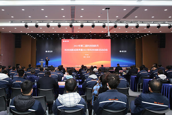 為總結科技創新成效,展示科技工作者風采,營造濃厚的科技創新文化氛圍,12月21日,通威太陽能成功舉辦“科技創新成果秀暨2023年科技創新總結活動”,通威太陽能副總經理宋梟、通威股份光伏技術部光伏研究院院長蔣方丹、通威太陽能雙流基地總經理助理徐濤出席活動,通威太陽能各基地共計350余名員工積極參與。