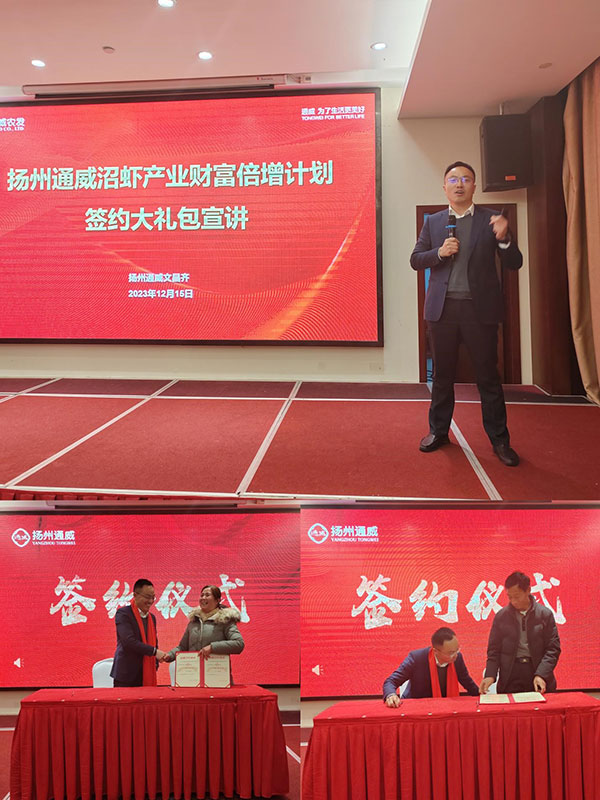 會議最后,文總發布了揚州通威2024年沼蝦料招商會議政策,通過文總的政策宣貫,現場參會的經銷商們熱情高漲,紛紛主動前往簽約,為揚州通威沼蝦料開門紅吹響號角。2024年揚州通威必勢如破竹,高質發展!