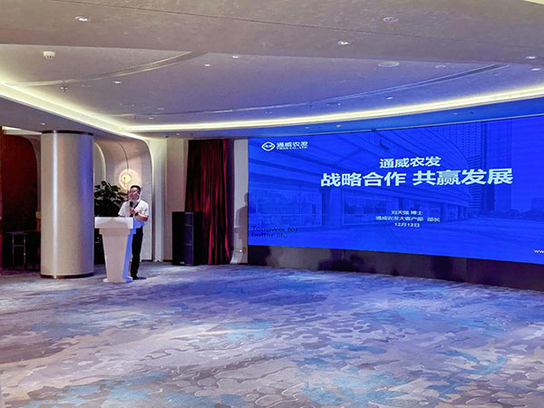 論壇上,劉天強(qiáng)博士分享了《戰(zhàn)略合作 共贏發(fā)展》主題報(bào)告。通威發(fā)端于水產(chǎn),成長(zhǎng)于農(nóng)牧,并于今年正式邁入“世界500強(qiáng)”的行列。發(fā)展至今,通威堅(jiān)持為用戶(hù)創(chuàng)造價(jià)值,企業(yè)才能持續(xù)發(fā)展的生存之道。劉博士從技術(shù)優(yōu)勢(shì)、原料優(yōu)勢(shì)、品質(zhì)管控、保障服務(wù)和產(chǎn)品特色五方面對(duì)通威產(chǎn)品做了詳細(xì)介紹,讓在場(chǎng)嘉賓對(duì)通威有了更深的了解。