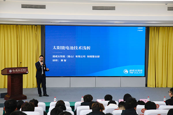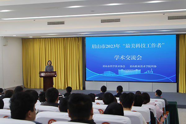 科技創新、科技普及是實現創新發展的兩翼,科技人才是創新發展的強大動力。為深入貫徹落實黨的二十大精神和習近平總書記來川視察重要指示精神,弘揚科學精神,傳播科學思想,普及科學知識,促進科技人才的成長和提高,促進學校工作與社會發展的共同進步,12月14日,眉山市2023年“最美科技工作者”學術交流會在眉山職業技術學院隆重舉行,眉山市科學技術協會副主席夏放主持,通威太陽能眉山基地總經理助理、黨總支書記姚騫受邀作為眉山市首屆“最美科技工作者”代表攜眉山基地技術骨干與莘莘學子授課交流,學校師生近300人參與其中。