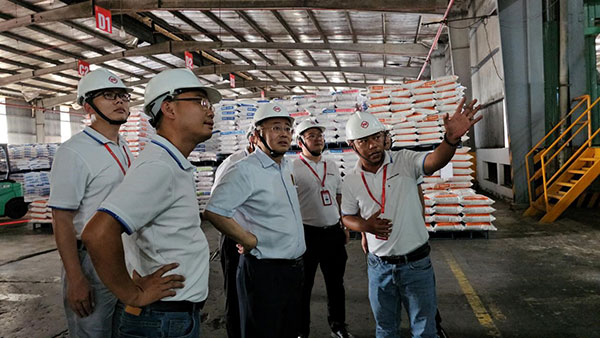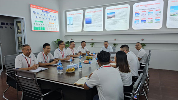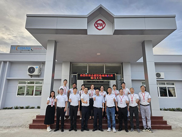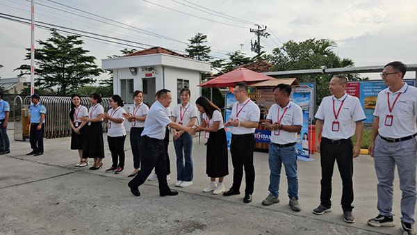 越南天邦公司總經理劉彥、生產部經理王瑞平以及相關部門經理陪同郭總前往公司廠區(qū)和車間視察工作。王經理向郭總說明了目前越南天邦車間運行情況,