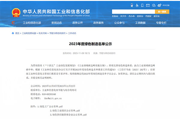 11月8日,中華人民共和國工業(yè)和信息化部發(fā)布了《2023年度綠色制造名單公示》(公示期為14日),通威太陽能安徽公司成功入選“2023年度國家級綠色工廠”。