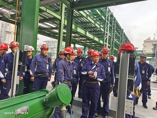 圍繞公司“高效經(jīng)營,執(zhí)行到位”的經(jīng)營管理思路,深入踐行“安全穩(wěn)定,改善提升,團隊建設(shè)”三大主題,11月17日,通威股份副總裁、永祥股份總經(jīng)理李斌,永祥股份副總經(jīng)理、永祥新能源常務(wù)副總經(jīng)理羅周,永祥股份安全環(huán)保總監(jiān)楊武明等公司管理干部對永祥新能源精餾二工段進行現(xiàn)場安全檢查,工段管理人員全員參與。