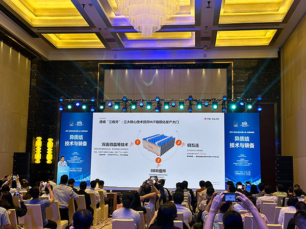 通威股份光伏技術部THL試驗線廠長蘇世杰在“異質結技術與裝備”論壇作題為《銅互連替代銀漿助力HJT降本增效》演講,分享通威在銅互連技術上的突破以及如何助力HJT技術早日實現產業化進程,獲得現場廣泛關注。