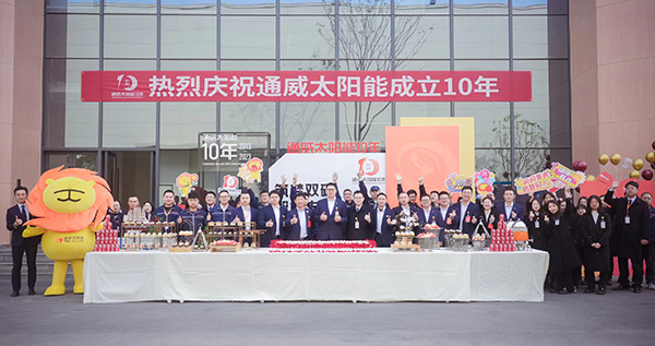 11月18日,通威太陽能迎來十歲生日。十年前,通威太陽能從合肥起步,到如今擁有安徽、雙流、眉山、金堂、通合、彭山六大電池生產基地,產能規模達90GW,員工規模近20000人,電池片出貨量連續六年全球第一,創造了多項光伏行業紀錄。十年風雨,十年成長。為了慶祝十歲這個特別的生日,11月以來,通威太陽能通過舉辦十年慶典、全球合作伙伴大會、公司表彰與主題文化活動,連接和致敬每一位為通威太陽能發展而不懈奮斗的人。