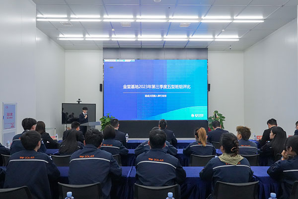 為持續打造通威太陽能高質量五型班組,提升一線班組“技能型、效益型、管理型、創新型、和諧型”建設能力,同時通過樹立標桿,營造班組間“比、學、趕、幫、超”文化氛圍。近日,通威太陽能各基地分別開展2023年第三季度五型班組評比活動,通威太陽能總經理助理陳君,通合新能源總經理助理羅曉云、郭寬新,通威太陽能金堂基地總經理助理龐三鳳、彭山基地兼安徽公司總經理助理顧峰、眉山基地總經理助理姚騫、雙流基地總經理助理徐濤攜各基地廠部負責人出席活動并擔任評委。