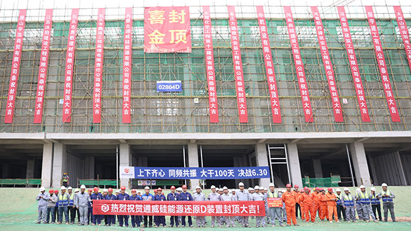 通威硅能源還原D裝置從基礎施工至主體封頂共歷時99天,比計劃提前3天完成。項目全體建設團隊團結一致,思想同頻、日夜奮斗、高效協作,科學合理策劃,執行精細化管理,強化全過程控制,順利提前完成了既定的封頂任務,創造了新的通威速度,同時也拉開了還原D裝置安裝大干的帷幕。
