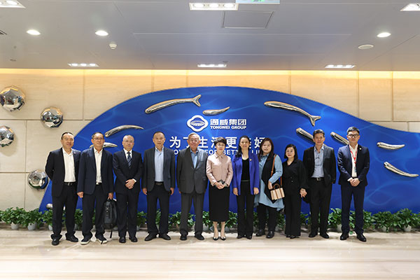 10月16日,馬來西亞金獅集團執行董事長丹斯里鐘廷森,四川省僑聯主席劉以勤、副主席楊東,四川省僑聯二級巡視員、省僑商聯合會秘書長余文彬一行蒞臨通威參觀交流,通威集團禚玉嬌總裁、副總裁胡榮柱熱情接待并座談。