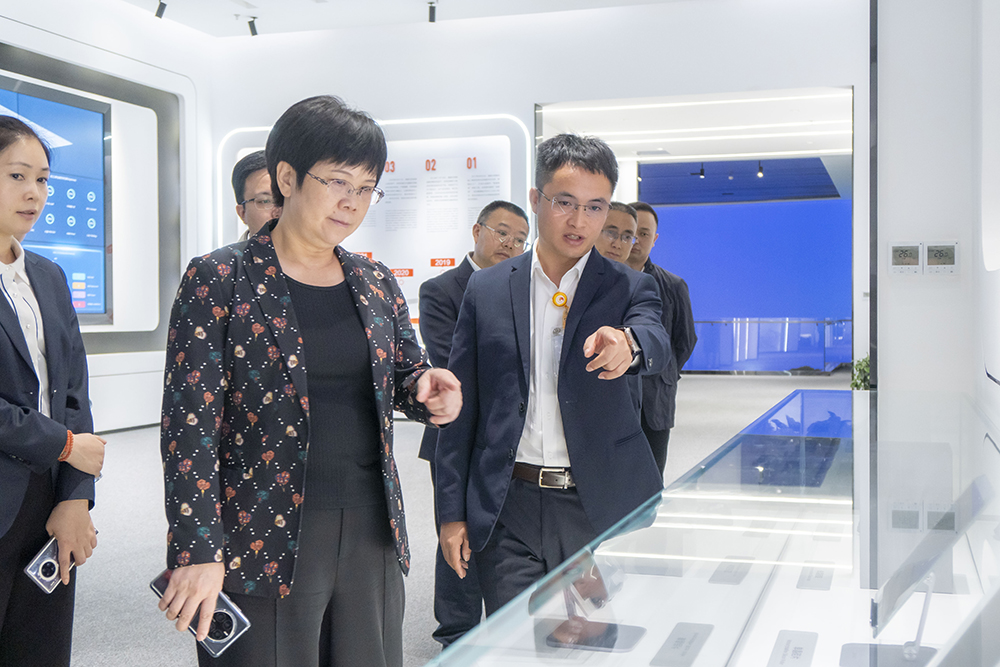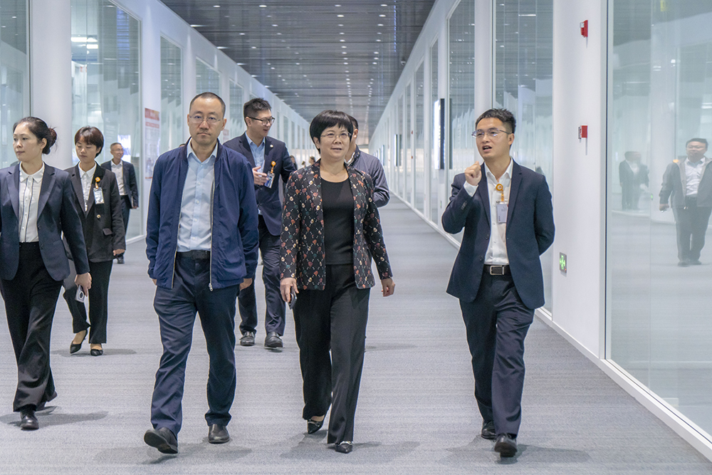 10月9日,四川省政府政務服務和公共資源交易服務中心黨委書記、主任呂芙蓉一行蒞臨通威太陽能眉山基地參觀,眉山市政務服務管理局局長周吉勛,甘眉工業園區黨工委副書記、管委會主任周泮羽陪同,通威太陽能眉山基地總經理助理姚騫熱情接待。