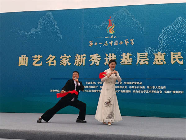 9月27日,第十一屆中國曲藝節系列活動——曲藝名家新秀進基層惠民演出之“走進“中國綠色硅谷”,在四川永祥新能源公司行政廣場熱烈舉行,楊蔓、楊婷、楊苗、楊倩、盧鑫、玉浩、王文水、趙海燕、閆光明等來自全國的曲藝名家新秀深入基層,為觀眾帶來了一場曲藝文化饕餮盛宴。