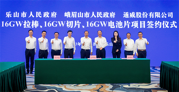 簽約儀式上,樂山市人民政府、五通橋區(qū)人民政府、峨眉山市人民政府與通威股份簽訂了《樂山市人民政府、五通橋區(qū)人民政府、通威股份有限公司16GW拉棒、16GW切片、16GW電池片項目投資協(xié)議》和《樂山市人民政府、峨眉山市人民政府、通威股份有限公司16GW拉棒、16GW切片、16GW電池片項目投資協(xié)議》。根據(jù)協(xié)議,通威股份將在五通橋區(qū)和峨眉山市分別投資100億元建設(shè)拉棒、切片、電池片項目,項目力爭 2024 年底建成投產(chǎn),2025 年底達(dá)產(chǎn)。