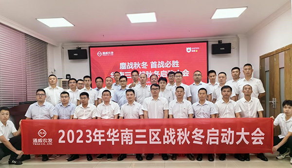 2023年9月25日,華南三區(qū)2023年戰(zhàn)秋冬啟動大會在海南海壹圓滿召開,通威農(nóng)發(fā)副總經(jīng)理何東鍵,華南三區(qū)總經(jīng)理望書生,通威農(nóng)發(fā)市場部梁海,片區(qū)服務總監(jiān)屈浩林,片區(qū)人力資源總監(jiān)陳興鑫及各公司總經(jīng)理,市場部經(jīng)理,服務經(jīng)理總計30余人出席會議。