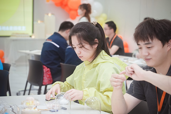 本次生日會(huì)主題為“海膽小夜燈DIY”“陽(yáng)光戳戳樂”。海膽,孕育于深不可測(cè)的大海,一身鋒芒,難以靠近。而燈,象征著希望和光明,溫暖明亮,愛意融融,看似毫不相關(guān)的兩者,通過溫潤(rùn)的木頭結(jié)合在一起,卻帶給我們一個(gè)靜謐而平和的世界。壽星們通過各自的巧手將海膽、貝殼、珍珠、燈帶等進(jìn)行自制搭配,每個(gè)人都制作出了獨(dú)一無二的小夜燈,為自己送上了最好的禮物;以針為筆,用線織夢(mèng),感受傳統(tǒng)民俗的魅力。小小的戳針遇上了壽星們靈巧的雙手和獨(dú)特的思維創(chuàng)意,發(fā)生了一場(chǎng)色彩與藝術(shù)的碰撞。隨后,壽星們分享蛋糕、同唱生日歌,在歡聲笑語(yǔ)中落下了本次活動(dòng)的帷幕。