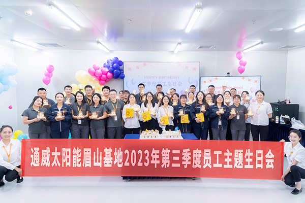 為進(jìn)一步增強(qiáng)員工歸屬感、營(yíng)造溫暖和諧的職工氛圍。9月20日至22日,通威太陽(yáng)能成功舉辦第三季度員工生日會(huì)。通威太陽(yáng)能總經(jīng)理助理陳君、通合新能源總經(jīng)理助理羅曉云蒞臨活動(dòng)現(xiàn)場(chǎng),代表公司向員工們送去生日祝福與關(guān)懷,和壽星們歡聚一堂,共度歡樂時(shí)光。