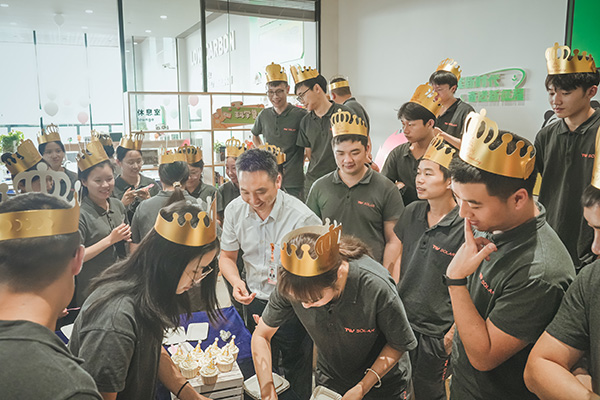 通威太陽(yáng)能“紅色聚能家”黨群共建品牌長(zhǎng)期以來致力于關(guān)心關(guān)愛員工,為提升廣大職工群眾幸福感、獲得感不斷努力。生日會(huì)是通威太陽(yáng)能的傳統(tǒng)活動(dòng)項(xiàng)目,“紅色聚能家”通過一次次的推陳出新,不斷豐富活動(dòng)形式、內(nèi)容,讓每一位壽星在都能體驗(yàn)到新穎有趣的活動(dòng)內(nèi)容,感受到溫暖和諧的企業(yè)氛圍。未來,通威太陽(yáng)能“紅色聚能家”將不斷提升關(guān)懷力度,團(tuán)結(jié)引領(lǐng)廣大職工群眾不懈奮斗,鑄就公司高質(zhì)量發(fā)展的職工城墻。