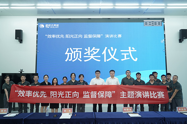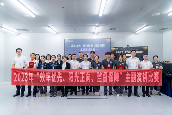 本次演講比賽,各基地演講愛好者積極報名,并由各基地部門領(lǐng)導(dǎo)組成評委團(tuán)對參賽選手從演講內(nèi)容、語言藝術(shù)、儀表形象、演講時間四個維度進(jìn)行評分和指導(dǎo),比賽現(xiàn)場光影閃爍,熠熠生輝,支持各位參賽選手的助威團(tuán)坐滿了觀賽席,選手們緊緊圍繞“效率優(yōu)先 陽光正向 監(jiān)督保障”的主題,立足自身工作經(jīng)歷,引用真實(shí)案例闡述忽視質(zhì)量所帶來的后果。參賽選手們的激情演講,臺下助威團(tuán)持續(xù)地喝彩,將整個比賽推進(jìn)了高潮,充分體現(xiàn)了通威太陽能對質(zhì)量管理工作的高度重視。