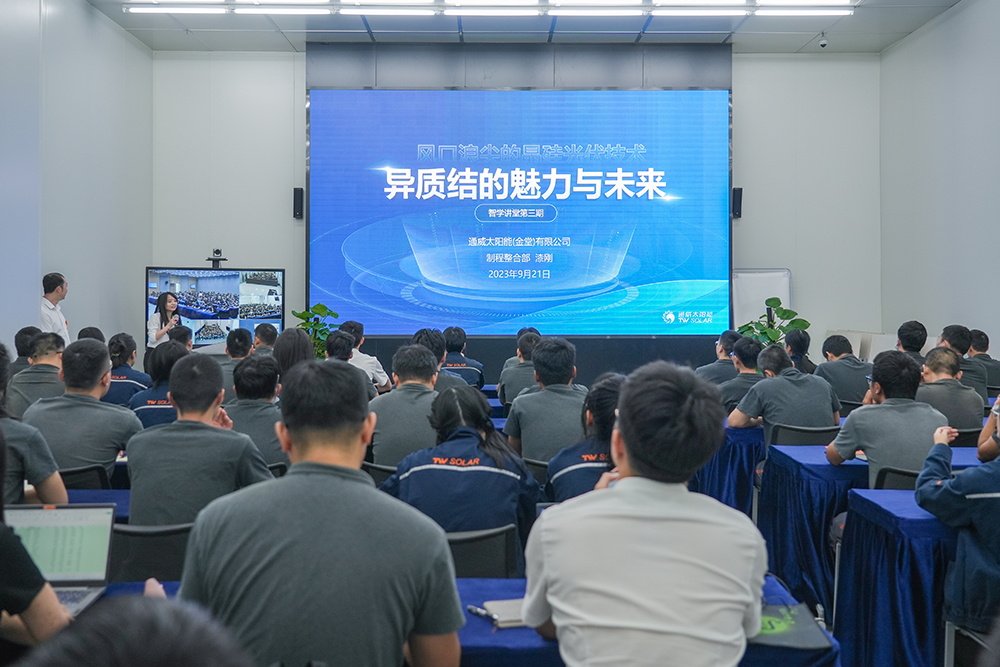 本次課程的主題為“異質(zhì)結(jié)的魅力與未來”,主要圍繞異質(zhì)結(jié)的含義、異質(zhì)結(jié)的技術(shù)創(chuàng)新、異質(zhì)結(jié)的魅力以及異質(zhì)結(jié)的未來四個方面展開。活動過程中,漆部全面講解異質(zhì)結(jié)的相關(guān)概念、發(fā)展歷程和產(chǎn)業(yè)布局。通過案例分析、視頻呈現(xiàn)、互動問答等形式與學(xué)員們深入交流了異質(zhì)結(jié)的技術(shù)優(yōu)勢和發(fā)展前景。活動結(jié)束后,學(xué)員們紛紛表示本次課程內(nèi)容與實際工作緊密相關(guān),通過漆部深入淺出的講解,對于異質(zhì)結(jié)技術(shù)認(rèn)知和行業(yè)現(xiàn)有主流技術(shù)發(fā)展方向有了一定的概念,拓展了思維和眼界。