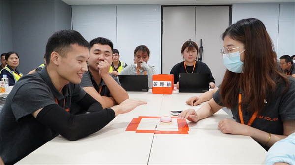 根據各基地實際情況及規則,組件合肥、金堂基地采用競答模式,組件鹽城基地則采用現場搶答模式,三地各部門積極報名,每隊3人,共計41個隊參賽。經過激烈的角逐,最終組件合肥基地組件質量部、計劃部、質量管理部分別獲得一、二、三等獎,組件鹽城基地一廠生產部、組件質量部、二廠生產部分別獲得一、二、三等獎,組件金堂基地廠務部、組件質量部、二廠設備部分別獲得一、二、三等獎。