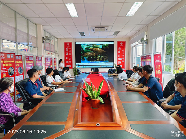 為了本次活動,人事行政部已經事先組織車間及后勤進行通威文化的復習,現場參會人員都積極學習,認真聆聽講解內容。