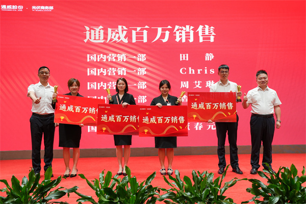 在表彰分享環(huán)節(jié),獲獎(jiǎng)代表分享了成功經(jīng)驗(yàn)及心得感悟,其中有6位同事憑借對業(yè)績持之以恒的追求和卓越出色的客戶服務(wù)能力,實(shí)現(xiàn)了上半年銷售獎(jiǎng)金過百萬的佳績,榮獲“通威百萬銷售”稱號(hào)。他們用自身的成功經(jīng)驗(yàn)鼓勵(lì)每一位銷售同事在通威的事業(yè)平臺(tái)上,奮勇爭先,鑄就個(gè)人事業(yè)的輝煌。